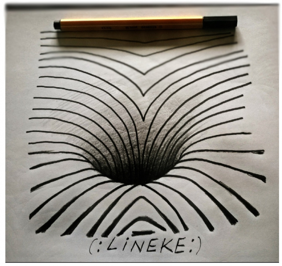 …but, it looks like the lines are actually a hole through the paper. It amazes me that this effect is created with nothing more than some lines and a little shading!