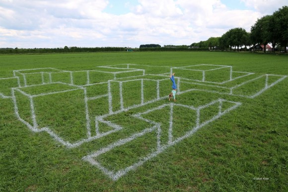 The person that sent in this illusion said that it was a 3D chalk illusion, but I don’t know if that’s the case. I mean, it’s possible, but it looks to me like this illusion was created with some white paint. I’ll let you check it out below and you can be the judge.